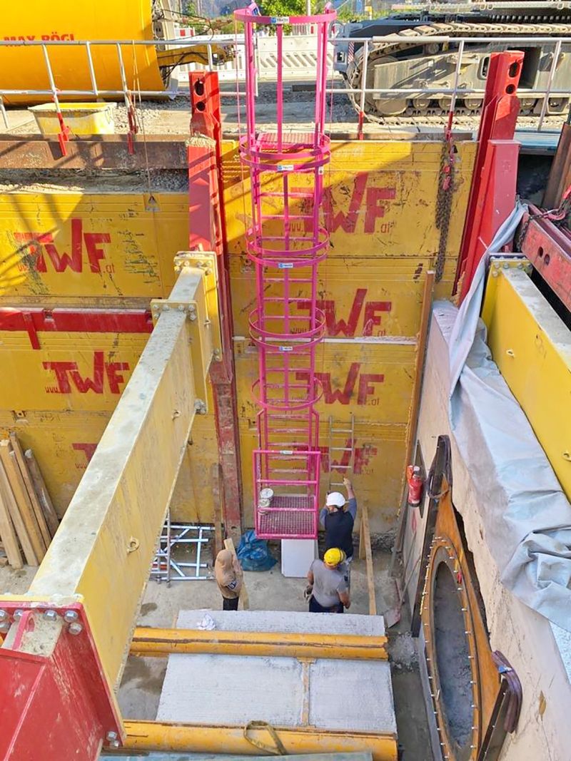 Die Verbauleiter wird in allen gängigen Grabenverbausystemen eingesetzt und ermöglicht den sicheren Zugang in bis zu 10 Metern Tiefe.