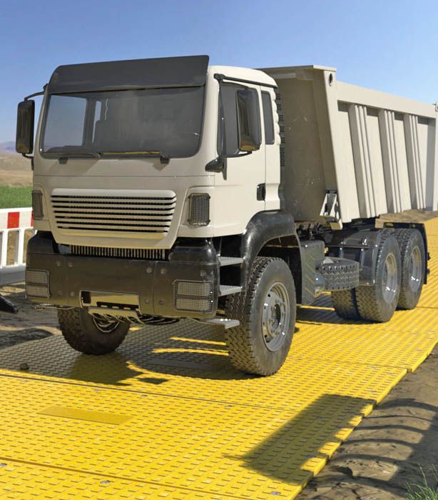 Die gestaltete Oberfläche der Produkte optimieren die Traktion und die Sicherheit der Baufahrzeuge oder LKWs. Die Verbinder verhindern das Verschieben der Panele.
